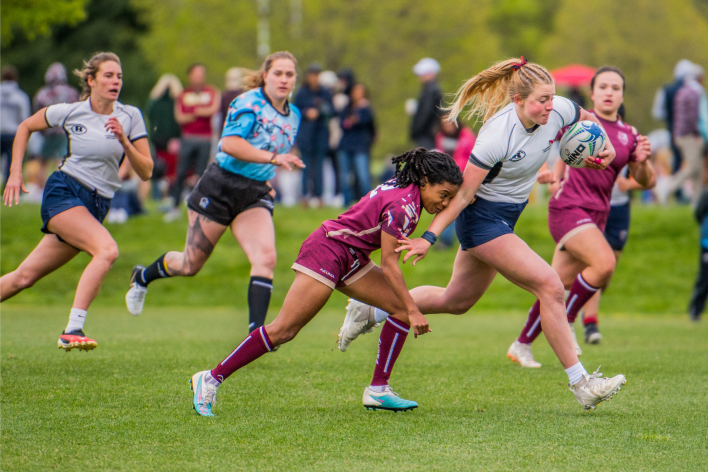 It started in spring when the two-time MVP was invited to the Olympic Training Center in Chula Vista, Calif. for a 7s Development Camp where USA Rugby competed against Canada. This summer, Bullock was selected captain of the Pacific Southwest Griffins—a 23-and-under regional all-star team comprised of athletes from Southern California, Arizona, and New Mexico—leading her squad to second place in its tier. From there, she was selected to compete at the Top 40 U23 USA Rugby Development Camp, again in Chula Vista, where she played with premier athletes from across the country. The opportunity, both “inspiring and motivating,” places her in a talent pipeline for the 2025 and 2029 Rugby World Cups—and possibly even the next Olympics.